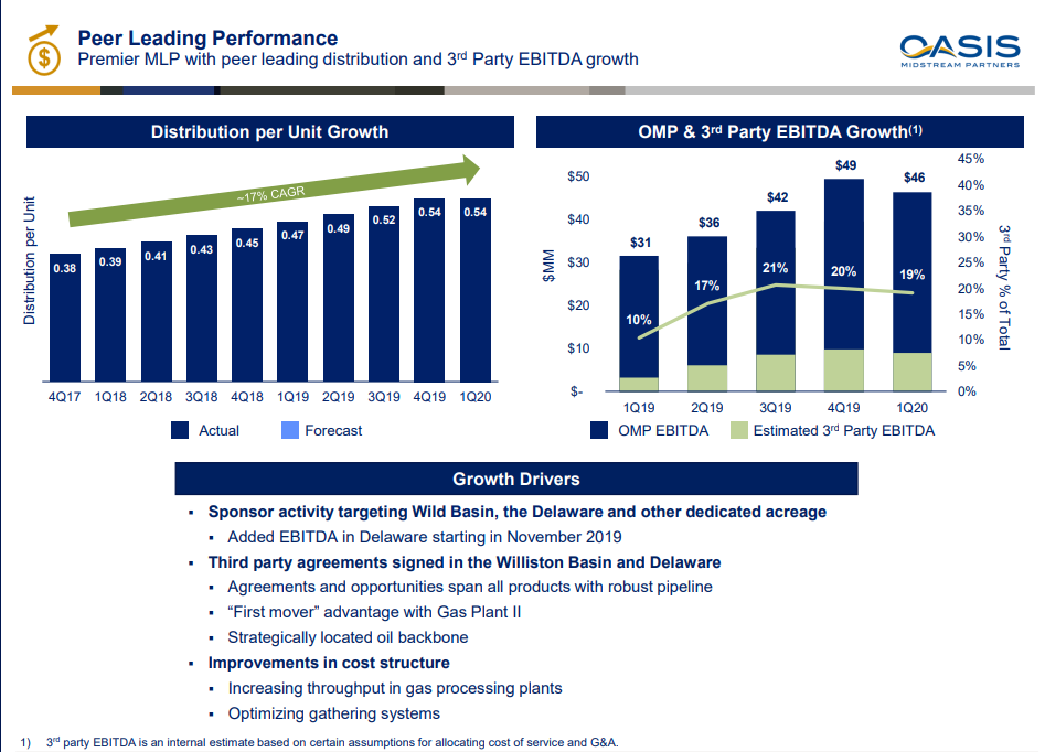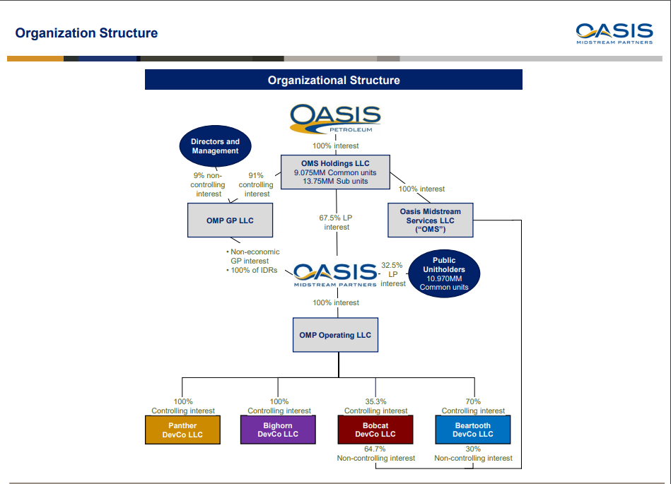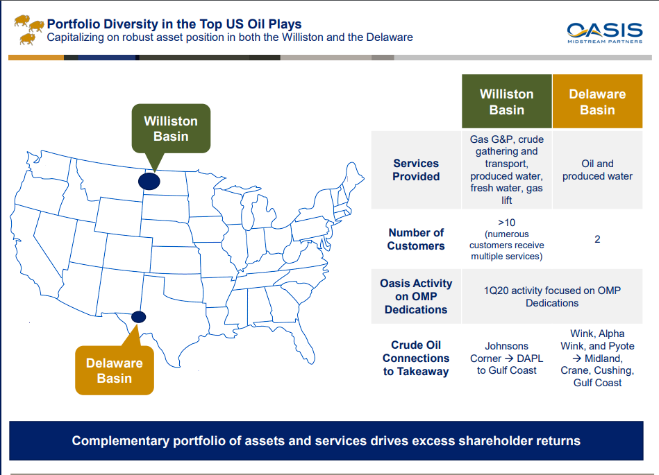 - Oasis Midstream Partners is a 3-year-old MLP, that operates in Williston Basin & Delaware Basin