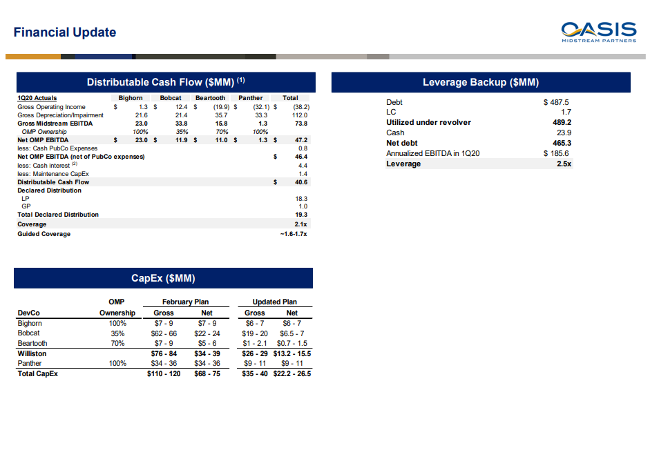Our focus is whether OMP can sustain paying dividend at current level comfortably and continue to grow it as needed. for Q1 2020 OMP has Net Distributable Cash flow of $40.6 million and Total Dividend of only $19.3 million giving it a coverage ratio of 2.1x.